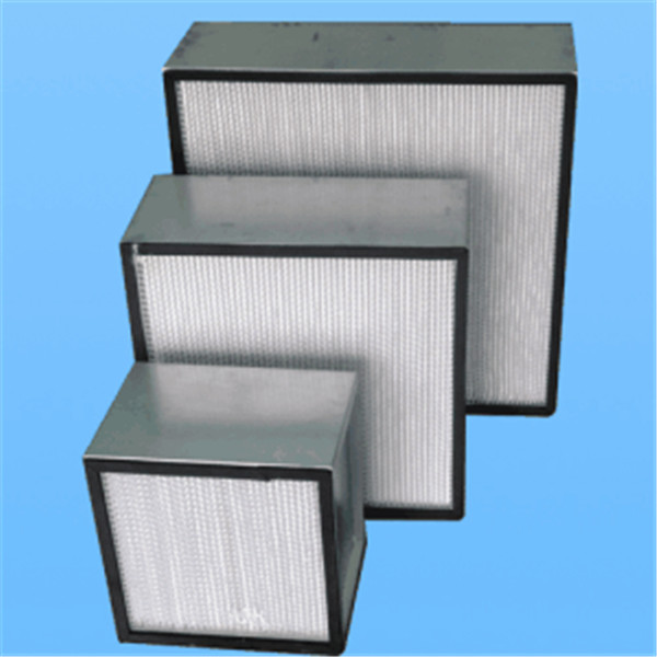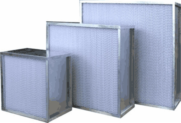 高效過濾器主要用于捕集0.5um以下的顆粒灰塵及各種懸浮物,作為各種過濾系統(tǒng)的末端過濾。采用超細(xì)玻璃纖維紙作濾料,膠板紙、鋁箔板等材料折疊作分割板,新型聚氨酯密封膠密封,并以鍍鋅板、不銹鋼板、鋁合金型材為外框制成。